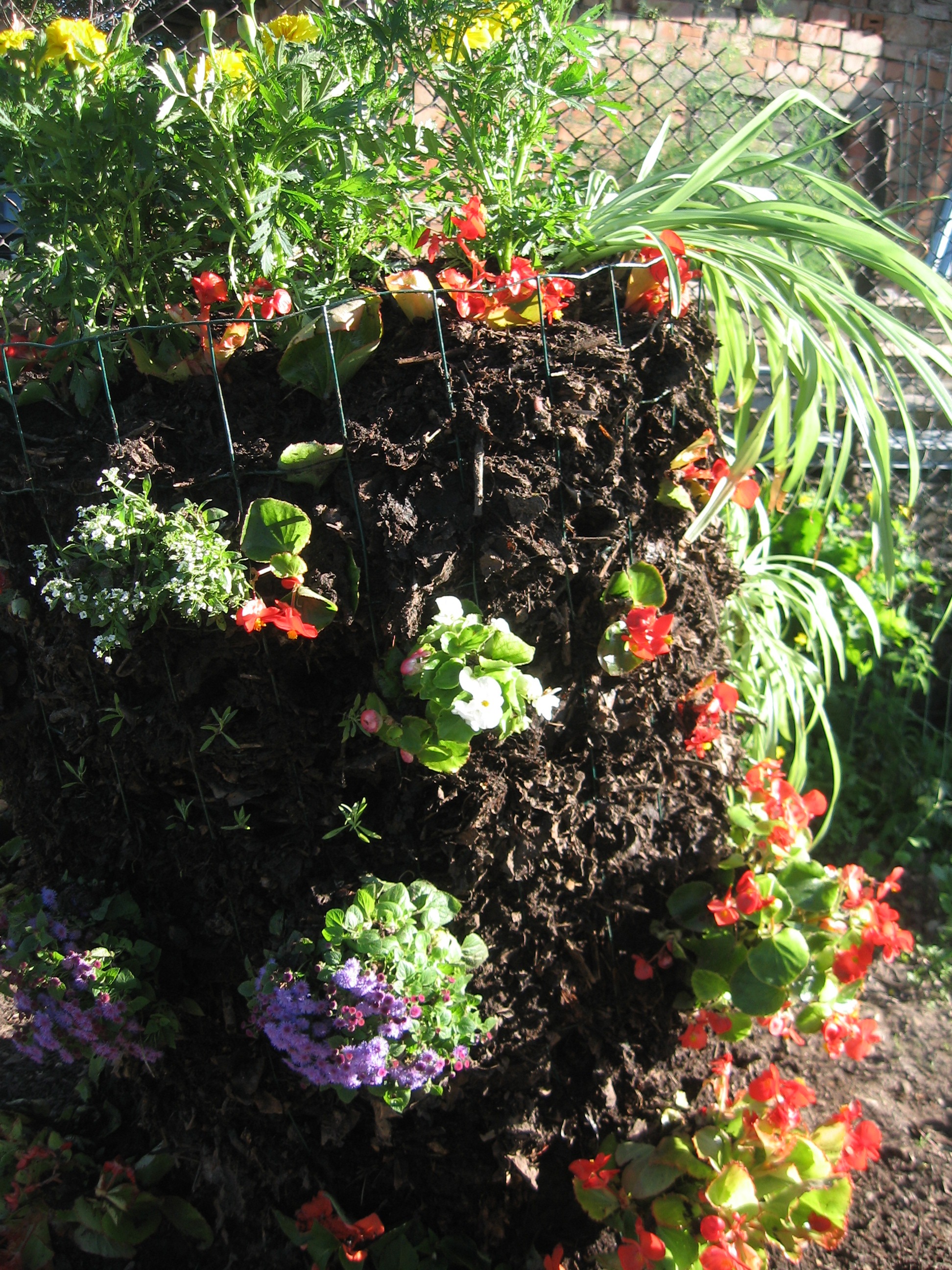Lai inovatīvās idejas pārbaudītu praksē, semināra otrajā daļā tika izveidota 1,2 m augsta vertikālā puķudobe ar samtenēm, leduspuķēm un alisītēm. Šādā oriģinālā veidā, piemēram, ir iespējams izaudzēt vairāk ražas urbānās šaurības apstākļos, kas ir aktuāli mazdārziņu apsaimniekotājiem. Turklāt dobe ir ainaviski pievilcīga un piemērota arī dārzeņu audzēšanai. Piemēram, vienu metru augsta dobe var aizvietot pat 10 m garu kartupeļu vagu. Šādu dobi var izmantot arī redīsu, salātu, tomātu un daudzu citu augu audzēšanai. Īpaši labi šādos apstākļos augot zemenes. Izvēloties augus vertikālajai dobei, jāņem vērā augšanas apstākļu īpatnības – komposta augsne, kas pakļauta izžūšanas riskam, turklāt augiem jāspēj augt uz sāniem, kas diez vai derēs burkāniem.