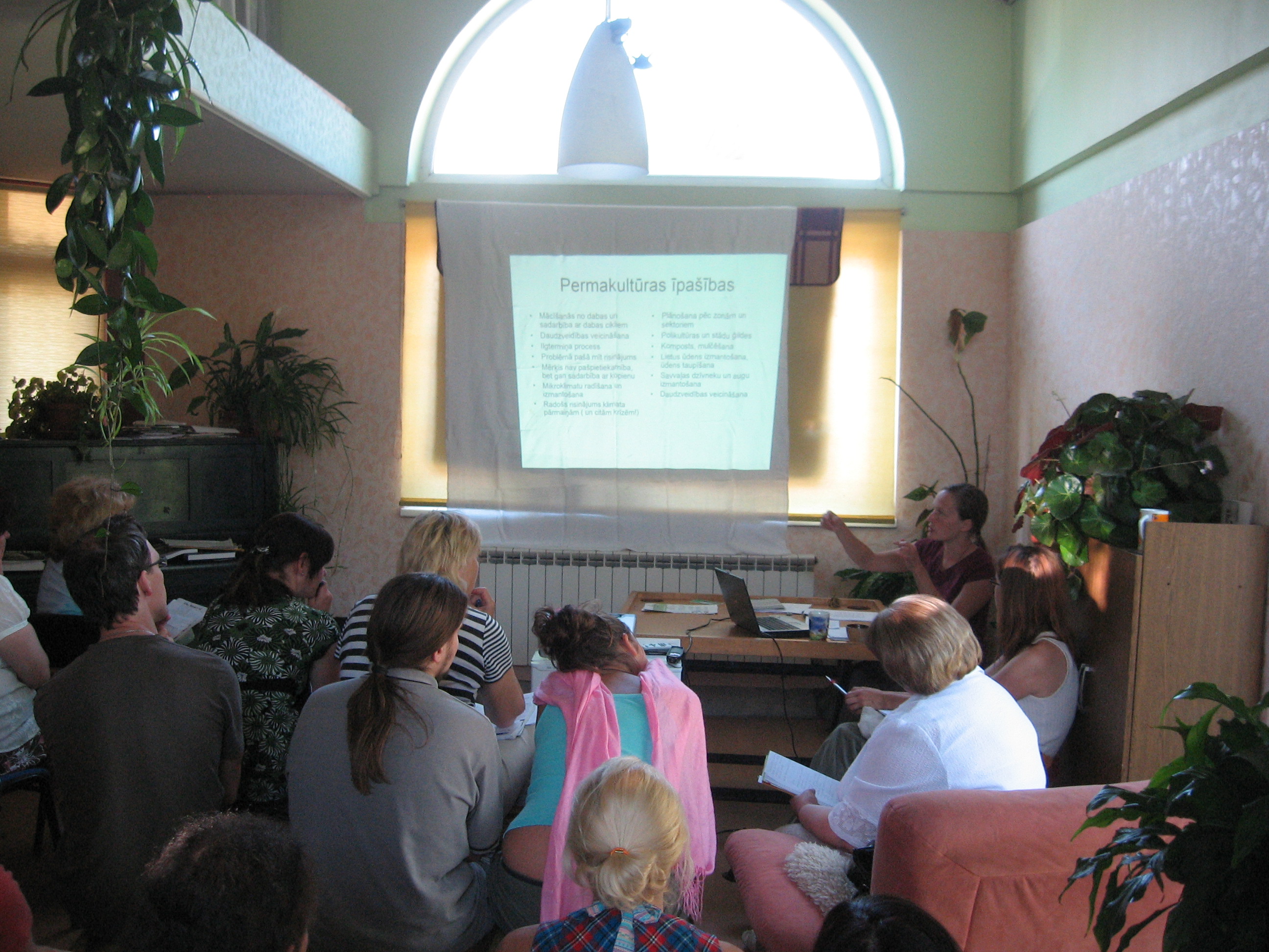 Semināra sākumā Mičiganas universitātes vides zinību un vadības doktore Guntra Aistara iepazīstināja klātesošos ar permakultūras jēdzienu. Permakultūra (no angļu val. permanent culture – pastāvīga lauksaimniecība un kultūra) – tā ir ekoloģisku principu sistēma, kas izstrādāta Austrālijā septiņdesmitajos gados, lai veicinātu ētisku un ilgtspējīgu dzīvošanu.