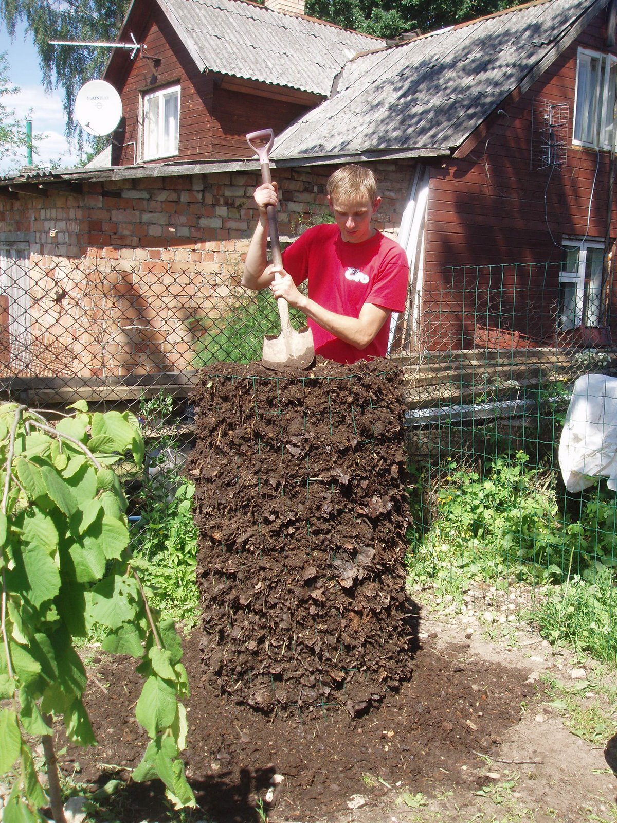 – dobes centrā zemē vajag iedzīt metāla stieni, lai dobe nešķiebjas, un pēc tam pildīt zemi;