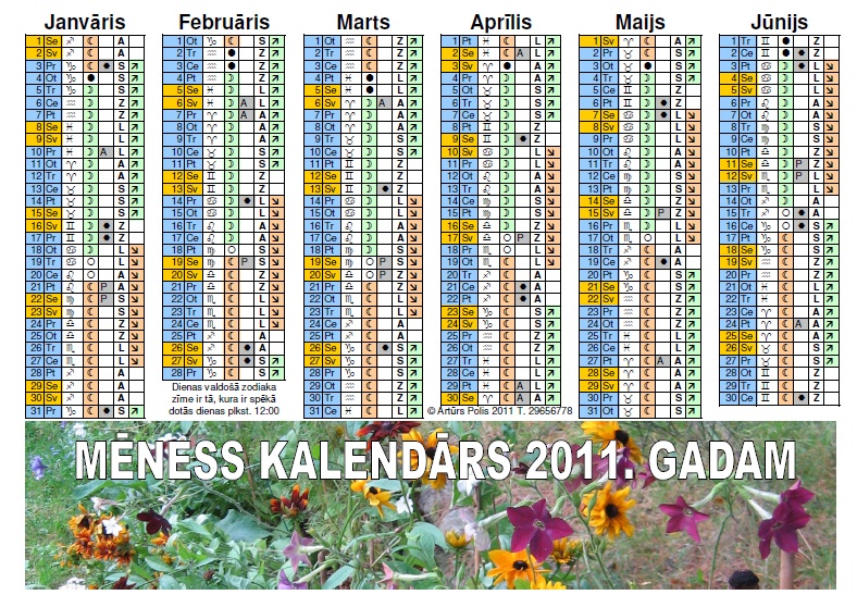 Lielisks Kalendārs. Ja tam būtu vēl ailīte klāt :mēness opozīcijā Saturnam, tad tas būtu neaizvietojams Biodinamiskajiem dārzkopjiem. aldis