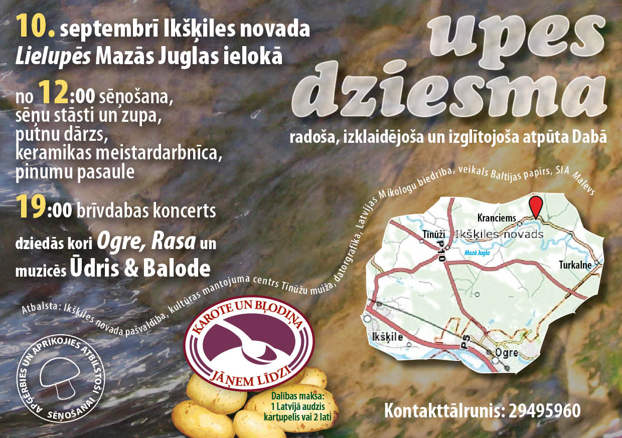 2011.gada 10.septembrī Ikšķiles novada Lielupēs notiks ikgadējais brīvdabas pasākums ar sēņošanu un dažādām aktivitātēm visas dienas garumā. Vakarā skanēs koncerts UPES DZIESMA kā pateicība Dabai par skaisto vasaru.