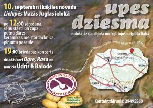 Plkst. 19:00, krēslas iestāšanās brīdī, sāksies brīvdabas koncerts UPES DZIESMA, kurā ar dziesmu pateiksim savu paldies Dabai par vasarā gūto prieku, enerģiju un gaismu. Koncertā piedalīsies Ūdris & Balode un kori Ogre un Rasa.