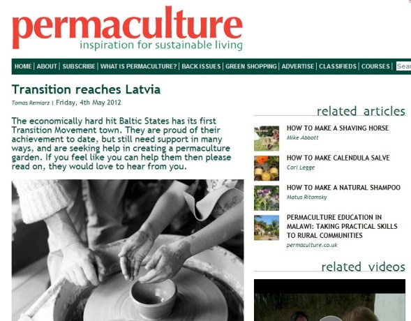 Ikšķiles pārmaiņu iniciatīva ir izpelnījusies pasaulē pazīstamā Permaculture Magazine interneta vietnes veidotāju uzmanību. Aicinām izlasīt, ko par mūsu sasniegumiem un nākotnes iecerēm raksta Permaculture Magazine…