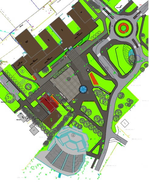 - Nav pieņemams centrālā laukuma slīpums (5% un vairāk). Tas jārisina ar līmeņu izlīdzināšanu un atbalstsienu pie tautas nama.