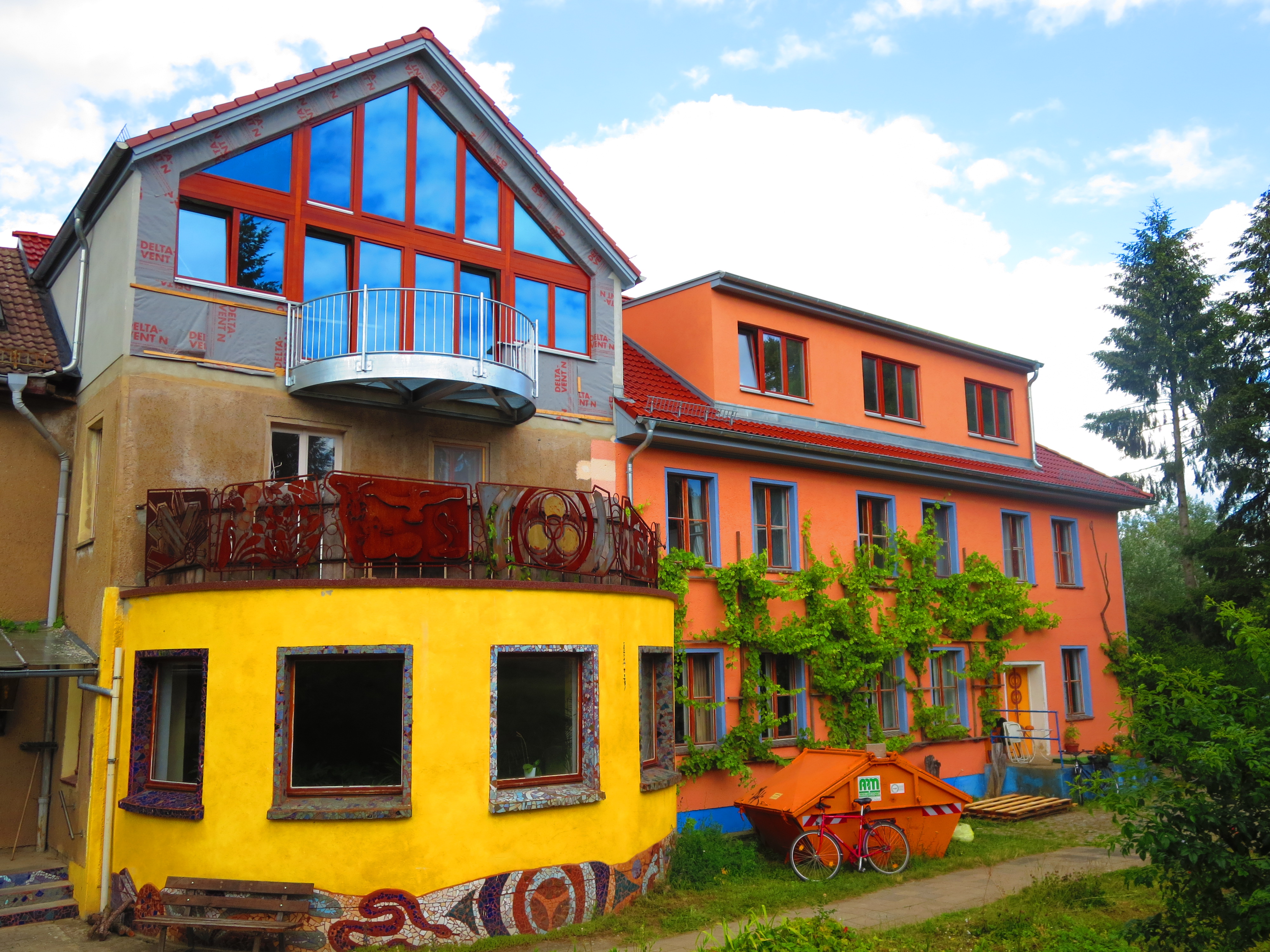 ZEGG ekociemata infrastruktūra, salīdzinot ar Sieben Linden, ir iespaidīgāka – daudz lielu ēku, plaša industriālā virtuve, liels restorāns, peldbaseins, plašas un skaistas dušu telpas, liela semināru zāle, interneta kafejnīca… arī ļoti daudz betona un asfalta, kas man nebūt nepatika (un neērti ar basām kājām staigājot). Un vēl, ZEGGā ir ielu apgaismojums, kamēr Sieben Linden katru vakaru slīgst tumsā… Atšķirībā no Sieben Linden, šeit cilvēki arī liberālāk izturas pret wi-fi un mobilo telefonu izmantošanu (tomēr publiskās vietās labāk pa telefonu nerunāt). Neskatoties uz iespaidīgo infrastruktūru, viesu uzņemšanai ZEGGs katru vasaru nomā desmitiem teltis – gulēšana tiek organizēta mazajās teltīs (5 cilvēki katrā), bet pasākuma galvenā daļa – milzīgā cirka teltī.