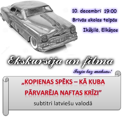 30. oktobrī Ikšķilē rādīs filmu “Kopienas spēks – kā Kuba pārvarēja naftas krīzi”, kas Latvijā tiks demonstrēta pirmoreiz. Pasākums tiek rīkots projekta “Zaļās filmas un spēle Mobility” ietvaros, un tā devīze ir ”Zaļais kino zaļajā Ikšķilē”. Projekta gaitā bez maksas tiks rādītas trīs pasaules atzinību guvušas vides filmas.